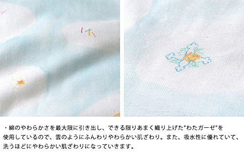 ・綿のやわらかさを最大限に引き出し、できる限りあまく織り上げた”わたガーゼ”を 使用しているので、雲のようにふんわりやわらかい肌ざわり。また、吸水性に優れていて、 洗うほどにやわらかい肌ざわりになっていきます。