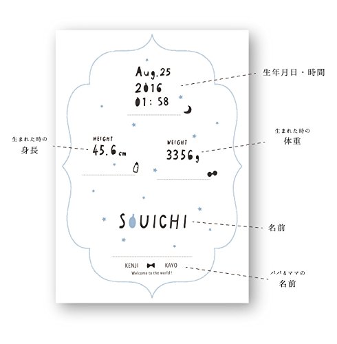備考:★10mois(ディモワ)オリジナル。赤ちゃんが生まれたら役所に提出する出生届と生年月日やお名前、身長・体重が載ったベビーポスター。