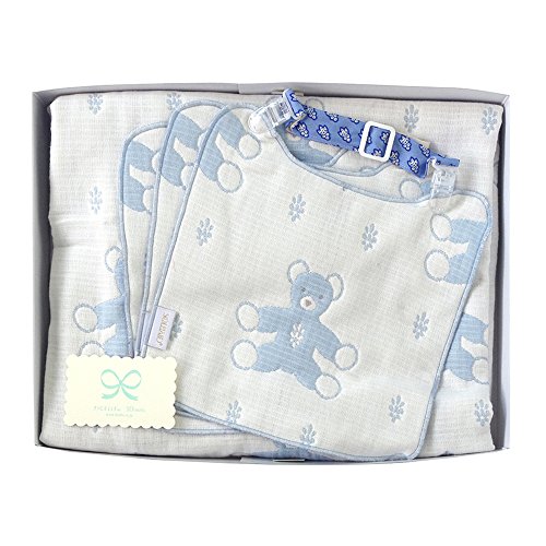 ソレイアード SOULEIADO 6重ガーゼケット+クリップ&ハンカチスタイ ギフトセット ブルー 8876