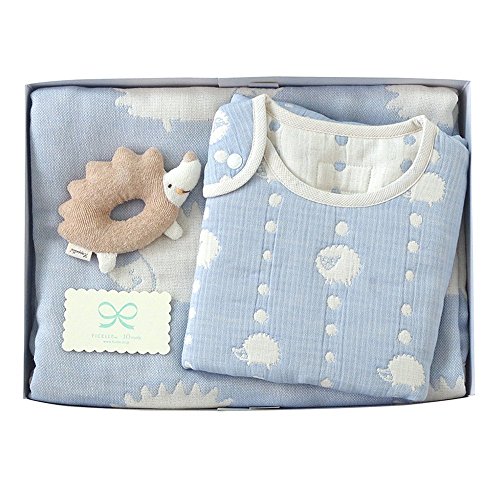 - [本体サイズ] ・ガーゼケット:約90×110cm・スリーパー身幅:約35cm、着丈:約58cm・がらがら:約14×10cm