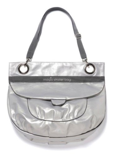春らしいシャイニーなメタリックシルバーのバッグがパリから届いた!マジックストローラーバッグはバッグのハトメ穴にベビーカーのハンドルをそれぞれ入れて使用する、新しいタイプのバッグ。