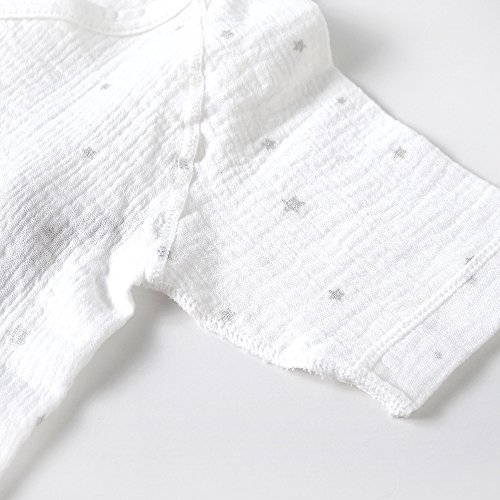 備考:★袖付け部分を平に縫製したり、脇縫い目をなくしたり、縫い目を外側にしたり…と赤ちゃんが快適にすごせる工夫がたっぷりの短肌着。