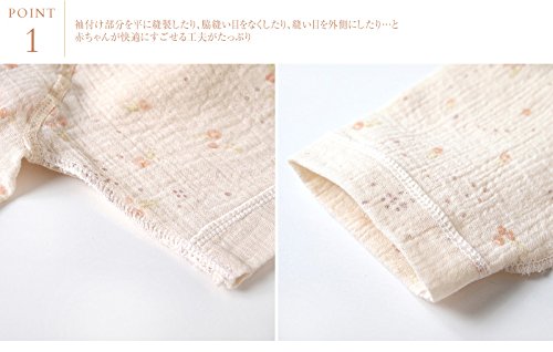 ・袖付け部分を平に縫製したり、脇縫い目をなくしたり、縫い目を外側にしたり…と赤ちゃんが快適にすごせる工夫がたっぷりの短肌着。