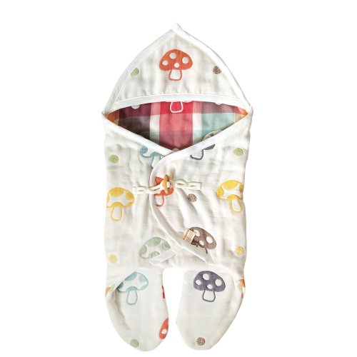北欧のラッキーアイテムを織りで表現したchampignon(シャンピニオン)シリーズの、ふわふわ6重ガーゼ素材の足つきアフガン。シャンピニオンはフランス語できのこの意味。 カラフルなきのこのモチーフがキュートで、男の子・女の子問わずお使いいただけます。内側のチェック柄がさりげなくおしゃれ。
