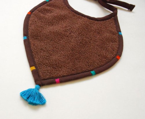 - パイル地でできた小さめのビブです。キナリとココアで少しデザインを変えています。