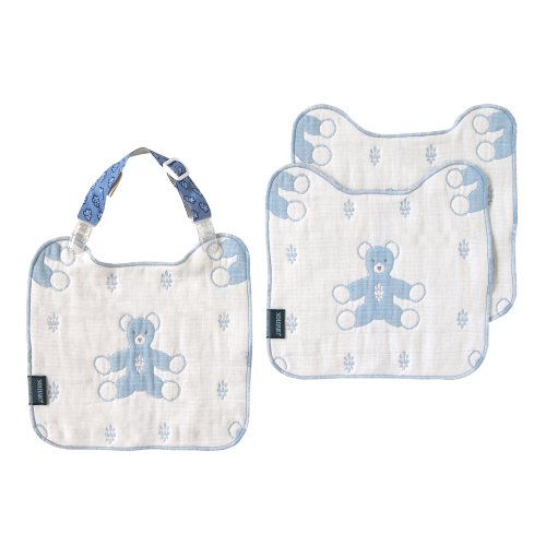 SOULEIADO ふくふくガーゼ(6重ガーゼ) クリップ&ハンカチスタイ ブルーセット