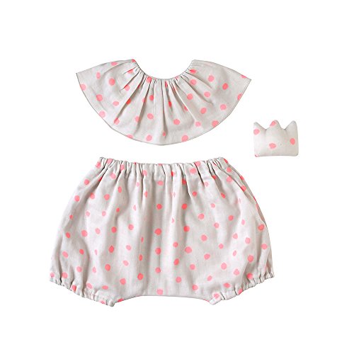 • シンプルなトップスに合わせるだけでコーディネートが完成する、ビブ・ブルマ・がらがらのセットです。