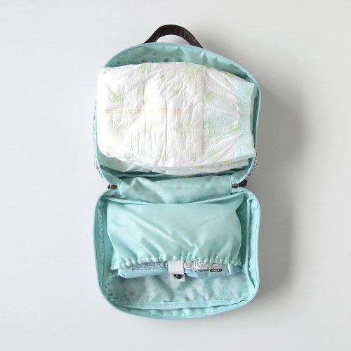 - ベビーとのお出かけ時に必要なおむつや小物をまとめて入れられるポーチです。