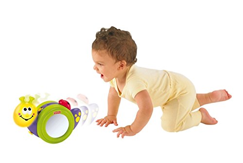 Wobble, wiggle, smile and giggle?this cheerful friend is fun in so many ways! For tummy time, baby will enjoy looking in the mirror, listening to music and sounds. For sit-up play, there’s back and forth rocking motion. And when baby’s ready to crawl, the snail will lead the way, wobbling along with lively music and dancing lights! Requires 2 AA batteries.