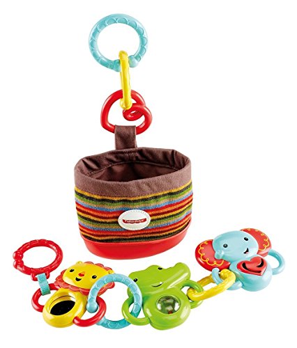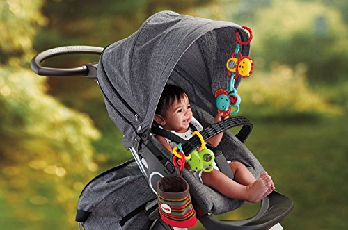 The sweet lion, crocodile and elephant easily link to each other and to your stroller so they're always close at hand when your little one needs some play time. And they're full of fun - with a mirror or cute sounds (Jingle! Rattle!) to keep baby busy. There are additional links to attach more toys (and more fun) on the go - plus a stylish knit fabric storage pouch that can provide put-and-take play as baby grows.