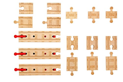 Does your child need a ramp or long track pieces to extend a Wooden Railway layout? How about special connector pieces for those trickier track links? The Sure Fit Track Pack offers the perfect solution and lets children create more variety in their layouts than ever before! Pack includes 16 pieces in all including three exclusive pieces with switchable male-to-female/female-to-male connectors, ramps and 1' track pieces.