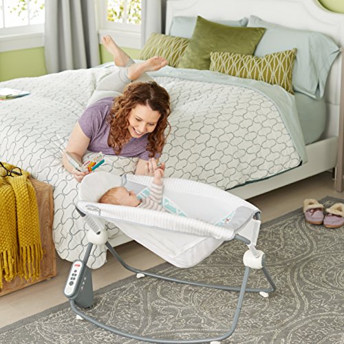 Sleeper & playtime seat in one;Comfy incline helps baby sleep;Hands-free rocking motion at the push of a button;Two Auto-Rock Settings! Nap time (30mins) or Nighttime (6hrs);12 songs & 3 sound effects