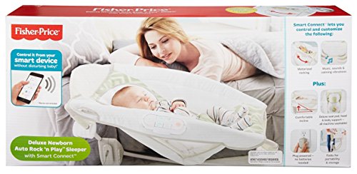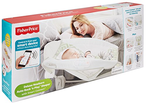 Sleeper and playtime rocker seat in one - with Smart Connect technology;Comfy incline, plush body insert and head support help baby catch those zzzzz's;For issues, please call Fisher-Price Customer Service: 800-432-5437;Hands-free rocking motion controlled from your smart device; Through your smart device, you can control:Music and sounds with volume controlCustomizable calming vibrationsAbility to save your baby's favorite settingsControl length of naptime or nighttime rocking;Two rocking speeds; Lightweight design with compact fold makes it easy to stow or go!;This is the ultimate sweet dream machine controlled from your smart device.;Hands-free rocking;Plays calming music and soothing sounds