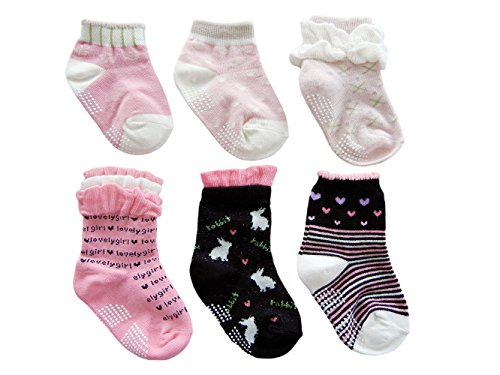 6足組(スニーカー丈3足、クルー丈3足)ソックス 9-14㎝ 女の子用 スベリ止め付
