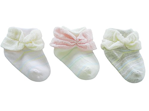 3足組新生児ソックス リボン 7cm - 9cm