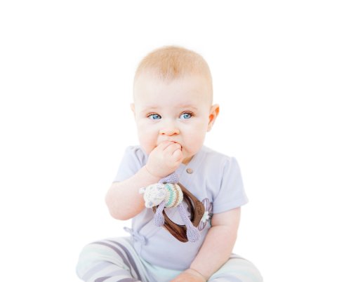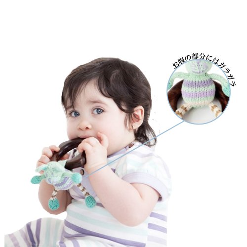 赤ちゃんが握りしめるのにピッタリなサイズに編みぐるみをプラス。