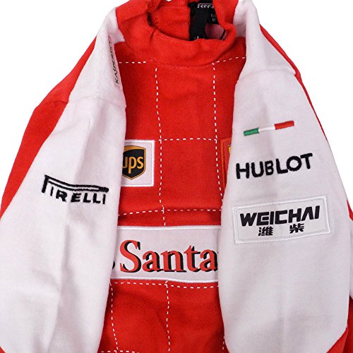 フェラーリ社が自らプロデュースし、販売を手掛けるフェラーリ社純正商品 フェラーリF1チームのドライバースーツをモチーフにしたオーバーオールです。足先まで覆えるタイプです。 背中と内股部分はスナップボタンで開閉できるので脱ぎ着が簡単にできます。 正面や袖にはチームロゴのほかスポンサーロゴも入り、本格的なレプリカアイテムに仕上がっています。 F1日本GPの観戦やレースイベントにぜひお子様に着させたい1着! カラー:レッド 素材:コットン80%、ポリエステル20% 中国製 サイズ(単位cm) 総丈=首の付け根~足の裾まで 0-3ケ月:総丈45 身幅28 肩幅20 袖丈20 3-6ケ月:総丈48 身幅30 肩幅22 袖丈22 6-9ケ月:総丈51 身幅31 肩幅24 袖丈24 9-12ケ月:総丈55 身幅32 肩幅24 袖丈24 12-18ケ月:総丈56 身幅33 肩幅25 袖丈26