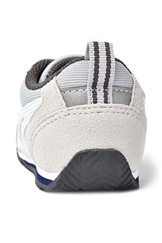足へのやさしさと快適さにこだわったスニーカー。まだ足を持ち上げた後のコントロールがむずかしく、足裏全体で着地するペタペタした歩き方をするベビーのために開発されました。アッパーには通気性にすぐれた日本製のメッシュ素材を使用。つま先部分は子どもの足に合った扇形で、足指がのびのび動かせます。大切なかかとを安定させるため、かかと部に樹脂製ヒールカウンターを内蔵し、シューズと足との一体感を高めています。また、中敷には、吸汗速乾性にすぐれた機能中敷を採用しています。さわやかな印象のライトグレーは男の子・女の子どちらにもおすすめ。