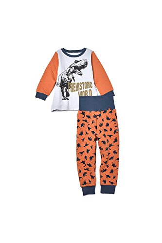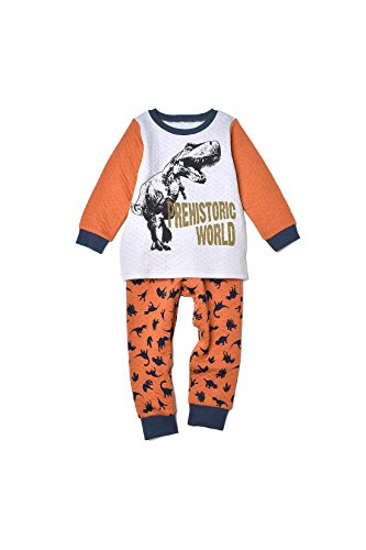 ふわふわあったかな、冬パジャマの決定版。 コットンの間にわたをはさんだ接結キルト素材は、ぬくぬく感とふわふわの肌ざわりが魅力です。パンツははらまき仕様で、おなかが冷えないようにしっかりガード! 前後がわかる目印テープで、ひとりでお着替えしやすい工夫も。トップスにもボトムスにも人気の恐竜をデザインしたかっこいいパジャマなら、すすんでお着替えしてくれるかも!? 洗い替えにうれしいプチプライス。