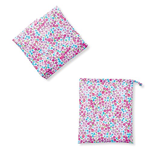 雨に歌いたくなる! ハッピーな小花柄。 可憐な小花をいっぱいちりばめた、ガーリーなレインコート。かわいいデザインで、雨の日もご機嫌に過ごせます。ランドセルを背負ったまま着られるから、通学も安心。袖口のゴムやわき下の通気穴、前が見やすい透明フードなど、うれしい工夫がいっぱいです。収納に便利なきんちゃくもセット。自分で開け閉めしやすいスナップボタン。袖口はゴム入りで、雨が入ってくるのを防止。少し大きめサイズも、袖を折らずに着られます。