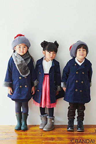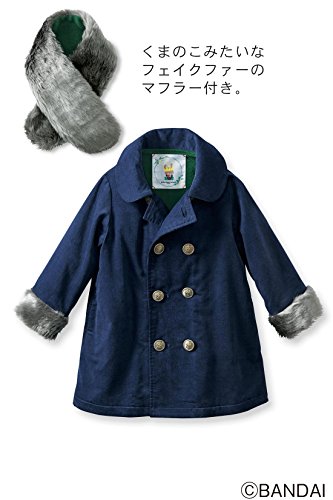 くまのこたちが着ていたこころまでほっこりするコート 上品な濃紺のシャツコール素材で仕立てたファー遣いの素敵な本格的コートです。裏地はフリース素材であたたか。男の子も女の子も上品に着こなせるひざ丈のAラインシルエットに仕立てました。セットになったファーマフラーをつけると、一気にスペシャルな気持ちが盛り上がります。絵本シリーズ『ジャッキーのクリスマス』でもジャッキーやおにいちゃん達が着ているのでチェックしてみてくださいね。