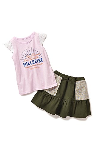 おとな顔負け ほんわかナチュラルコーデ。 ちょこんとしたレース袖のトップスと花柄の切り替えが愛らしい布はくスカートの上下セット。小技の効いたシンプルなスカートは着まわしも抜群!