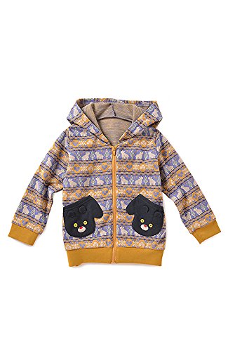 (フェリシモ) チーキーリーベリー ミトンポッケの ジャカード 柄 パーカー パープル x イエロー 8 ガールズ 8