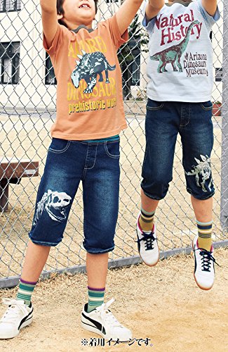 (フェリシモ) 迫力満点 リアルでかっこいい ダイナソー骨 デニム パンツ ターコイズ x ブラック キッズ ボーイズ 9