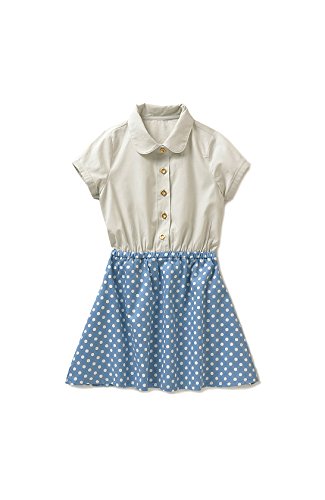 (フェリシモ) おりこうコーデが即完成 シャツ x スカート ドッキング ワンピース オフホワイト x ライトブルー キッズ 14
