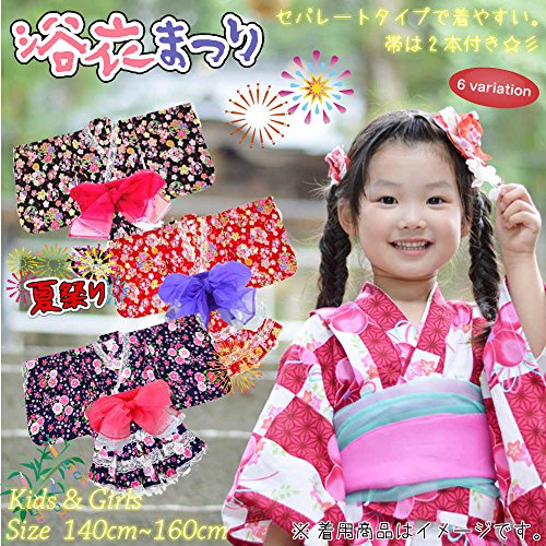 浴衣ドレス 子供用 女の子 浴衣 ガールズ 帯2本付き 七夕 夏祭り 花火大会 fo-tmyd02 160cm No05