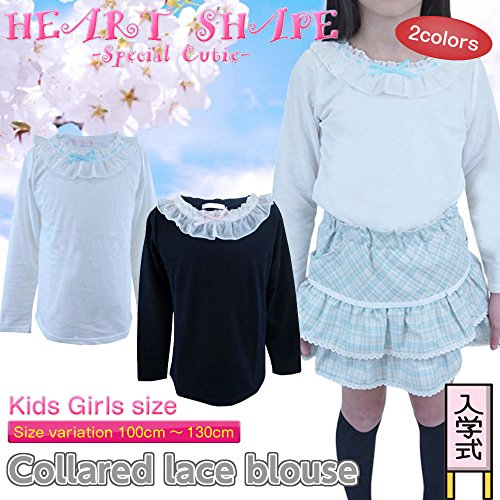 レースフリル付き 長袖Tシャツ キッズ ガールズ ブラウス 卒園式 入学式 fo-63012 120cm シロ