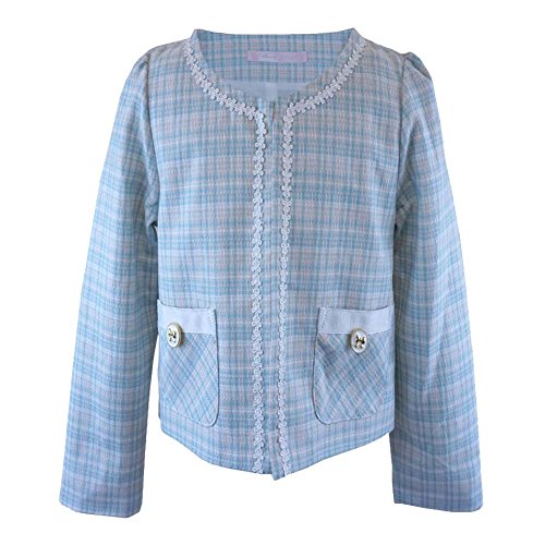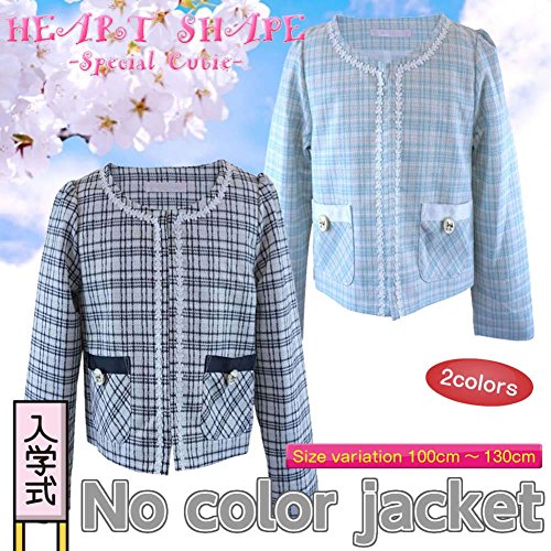 ガールズ ノーカラーショートジャケット キッズ チェック 卒園式 入学式 fo-63011 100cm ブルー