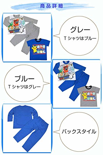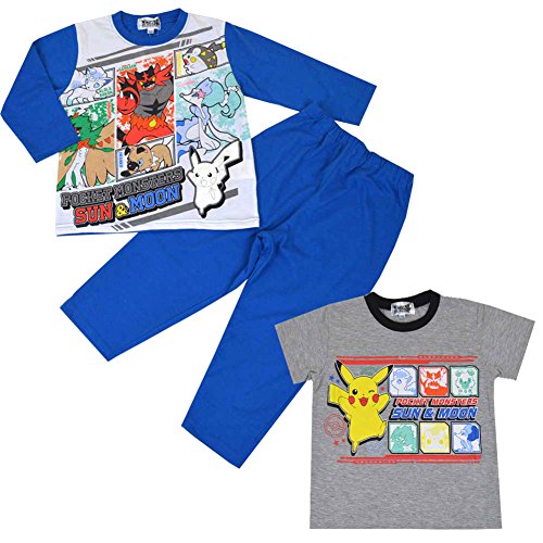 ポケットモンスター サン&ムーン パジャマ 天竺スウェットパジャマ ポケモン ピカチュウ 子供 半袖 長袖 長ズボン 男の子 fo-2top05 100cm ブルー