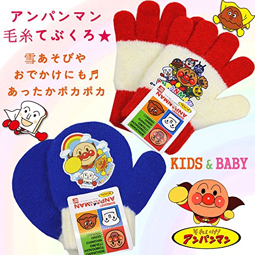アンパンマン ミトン手袋 ベビーサイズ ニット手袋 雪用手袋 防寒 雪遊び 冬物 anpanman スノーfo-gr4 5本指(青)