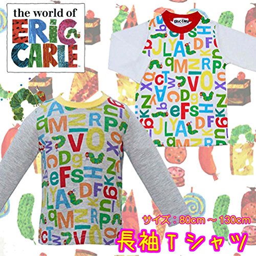 天竺 カラフル英字 長袖Tシャツ はらぺこあおむし THE WORLD OF ERIC CARLE fo-eh3557-eh9105 95cm グレー