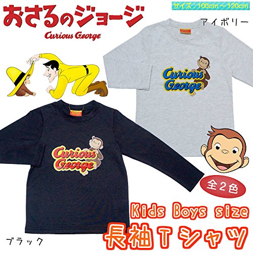 おさるのジョージ ロゴプリント 長袖Tシャツ 天竺 Curious George 春物 fpo-pn9121 110cm ブラック