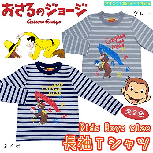 おさるのジョージ ボーダー柄 長袖Tシャツ 天竺 Curious George 春物 fpo-pn9119 100cm グレー