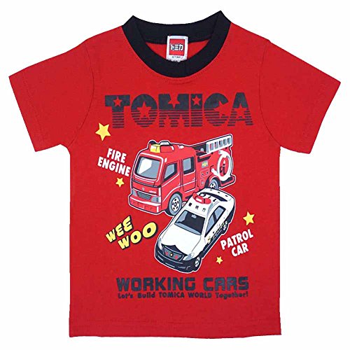 トミカ 半袖Tシャツ 子供 パトカー 消防車 ミキサー車 はたらくくるま TOMICA コスパ fo-ht05 95 レッド