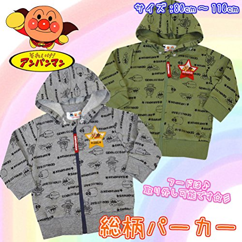 アンパンマン Anpanman 裏毛 総柄パーカージャケット fo-ea7901-ea9459 95cm カーキ