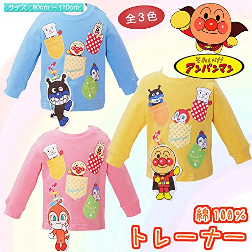 アンパンマン 裏毛起毛 ぶらぶらモチーフ 長袖トレーナー 足ぶら ea3880-9231 80cm サックス