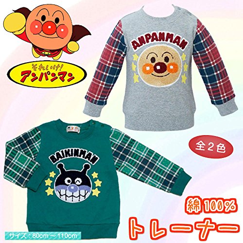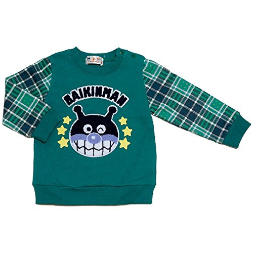 アンパンマン バイキンマン 裏毛 さがら刺繍 袖プリント 長袖トレーナー Anpanman ea3873-9225 110cm グリーン