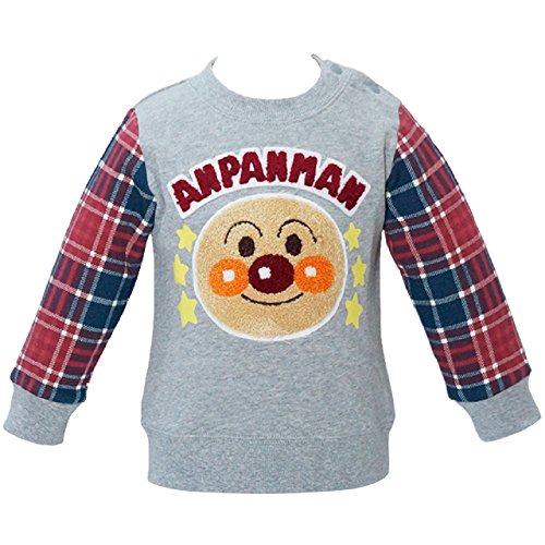 アンパンマン バイキンマン 裏毛 さがら刺繍 袖プリント 長袖トレーナー Anpanman ea3873-9225 80cm グレー
