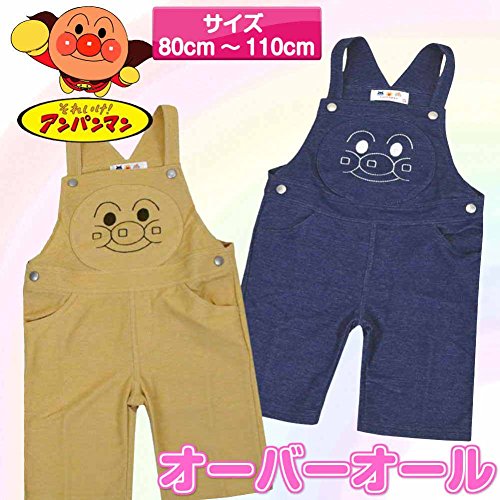 アンパンマン オーバーオール フェイス柄 サイドポケット ニットデニム 夏物 fpo-ta7483-9302 80cm ネイビー