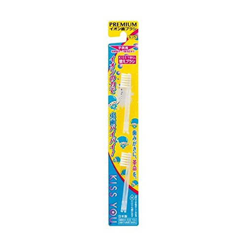 「キスユー イオン歯ブラシ 子供用 替えブラシ ふつう 2本入」は、マイナスイオンを、歯と歯ぐきに流すことにより、歯ぐきをイキイキさせる健康歯ブラシ「キスユー イオン子供用」の替えブラシです。毛先がひらいたら、お取り替ください。毛のかたさは「ふつう」です。