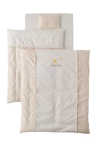 - [素材] 生地:綿100%(PT部分40サテン地)、(おねしょシーツのみ 表:綿80%・ポリエステル20% 裏:ウレタン樹脂フィルム)、中綿:ポリエステル100%、(掛・肌ふとん・枕のみウォシュロン綿)