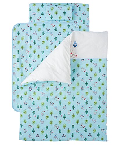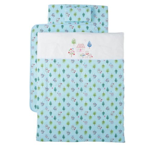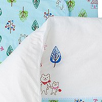 Wガーゼプリント 洗える布団10点セット フォレストフレンズ-サックス-.