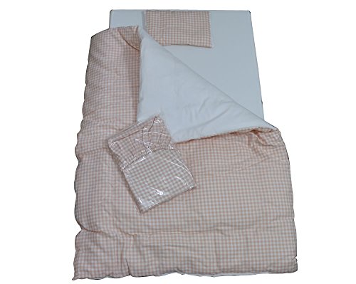 - 素材:生地/綿100% 掛け・枕:ポリエステル100%(テイジンウォッシュロン) 敷布団:ポリエステル100%
