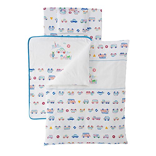 - 掛け布団・枕の中綿は、ウォシュロン綿を使用していますので、ご家庭で簡単に手洗いができます。 布団セットには、80×105cmサイズの4重ガーゼケットが付いていますので、暑い時期はガーゼケット単品で、寒い時期は布団セットにプラスしてご使用できます。又、掛け布団ヌードも2枚あるので、暑い時期には1枚・寒い時期には2枚と枚数の調整ができます。