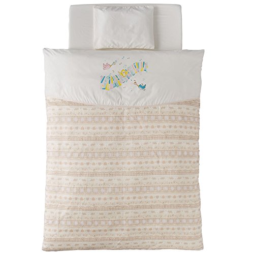 - 洗える布団で赤ちゃんは、いつも爽やかな寝心地!赤ちゃんのお肌に触れる掛けカバーの裏側、枕カバー、フィットシーツは、お肌に優しい、細番手のオーガニックコットンを使用していますので、優しい肌触りです。