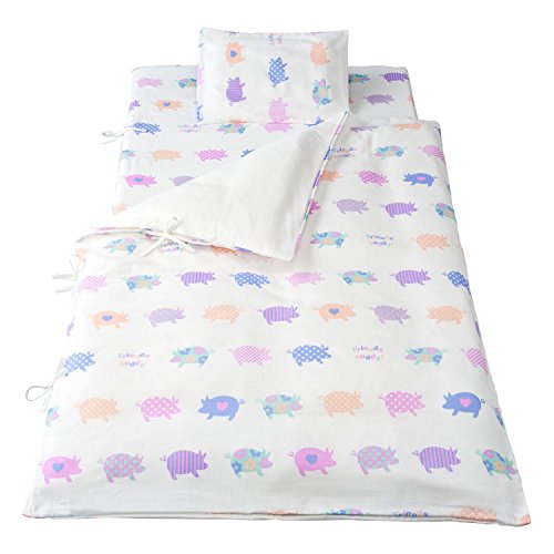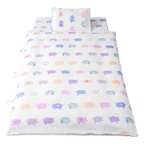 お昼寝布団セット 7点セット フレンズバディ ぶた ホワイト 日本製 ふとんカバー 開閉形状 3ヶ所ヒモタイプ